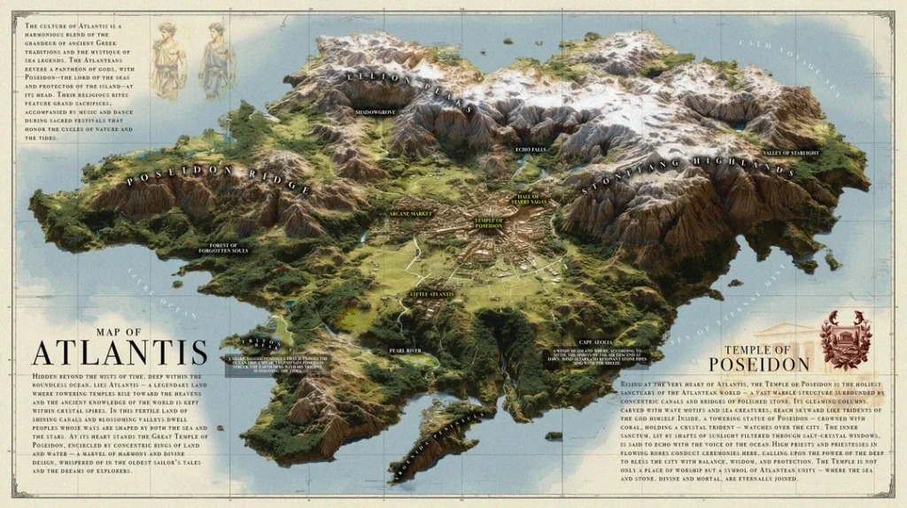 Už přes 2400 let fascinuje lidstvo příběh o Atlantidě. Pokročilé civilizaci, která údajně zmizela přes noc pod hladinou oceánu. Poprvé o ní napsal Platón v dialozích Timaios a Kritias kolem roku 360 př. n. l. Podle něj ležela Atlantida za Hérakovými sloupy (dnešní Gibraltar), byla větší než Libye a Asie dohromady a měla obří kruhové kanály, chrámy ze zlata a orichalcu – záhadného kovu. V roce 9600 př. n. l. se pokusila ovládnout Středomoří, ale Athéňané ji porazili. Krátce poté přišlo katastrofální zemětřesení a povodeň, které ostrov potopily během jedné noci. Platón tvrdil, že příběh slyšel od egyptských kněží. Historici to často považují za filozofickou alegorii o pýše a úpadku civilizací, ale mnozí badatelé věří, že je založený na skutečných událostech.