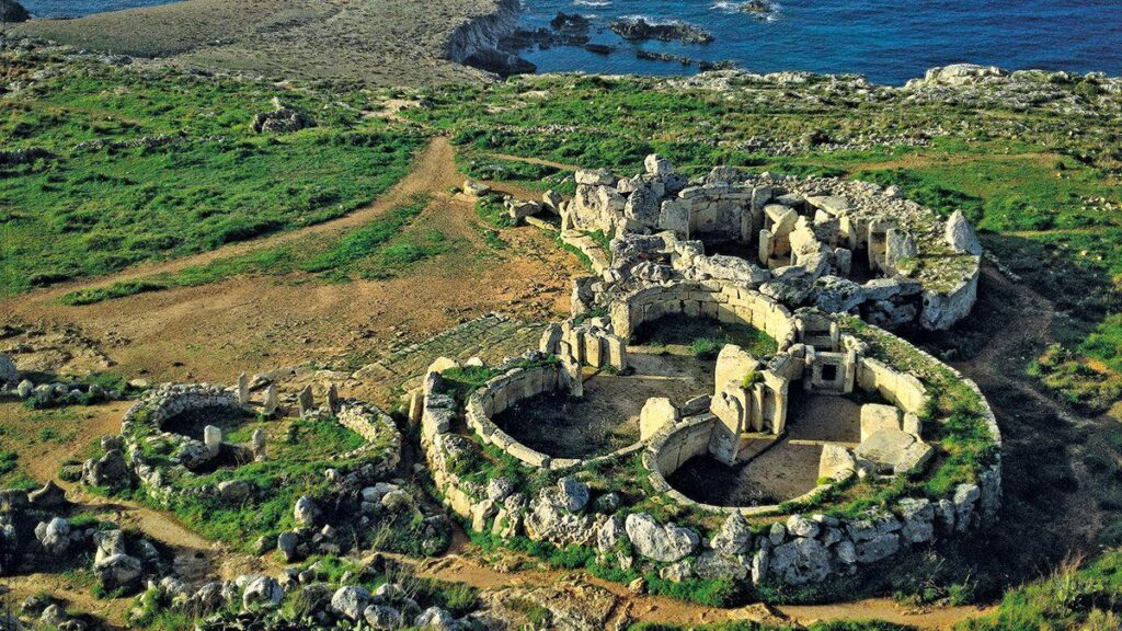 Chrám starší než egyptské pyramidy (3600 př. n. l.), obří kameny bez kovových nástrojů. Komplex se skládá z několika chodeb a komor s reliéfy a oltáři, postavených z masivních bloků vážících desítky tun. Ggantija je součástí megalitického komplexu na Maltě a Gozu – dva hlavní chrámy na Gozu jsou vytesány z obřích vápencových bloků, některé až 5 metrů vysoké a vážící přes 50 tun. Celý areál má tvar půlměsíce a obsahuje oltáře, kamenné stěny a rituální prostory.